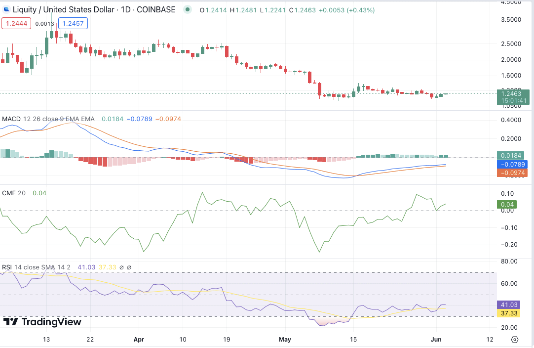 The 1-day Liquity price analysis chart further reveals that the bulls are in full control of the market. The market rallied and hit a high of $1.26 today, which acts as resistance. The price is currently consolidating near the $1.24 level, but there’s still a strong potential for further upside above this area. The support is present at the $1.20 level, which is expected to hold if the bulls can keep up their current momentum.