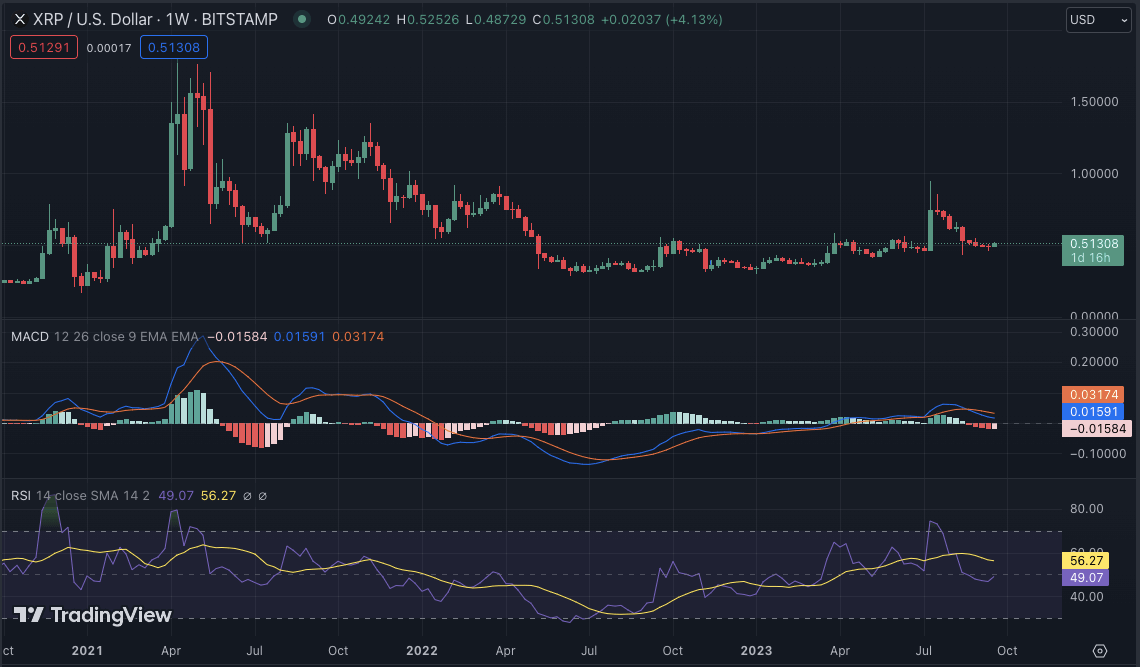 XRP has been trading below the $0.52 level for most of this week, with bears and bulls locked in a battle. The weekly high was seen at $0.5235 on 21st September and touched a low of $0.4896 on 18th September. The bulls have been gaining the upper hand in the past 24 hours, with XRP/USD currently trading at $0.515, recording a modest increase of 1.28% and a 7-day loss of 3.67%.